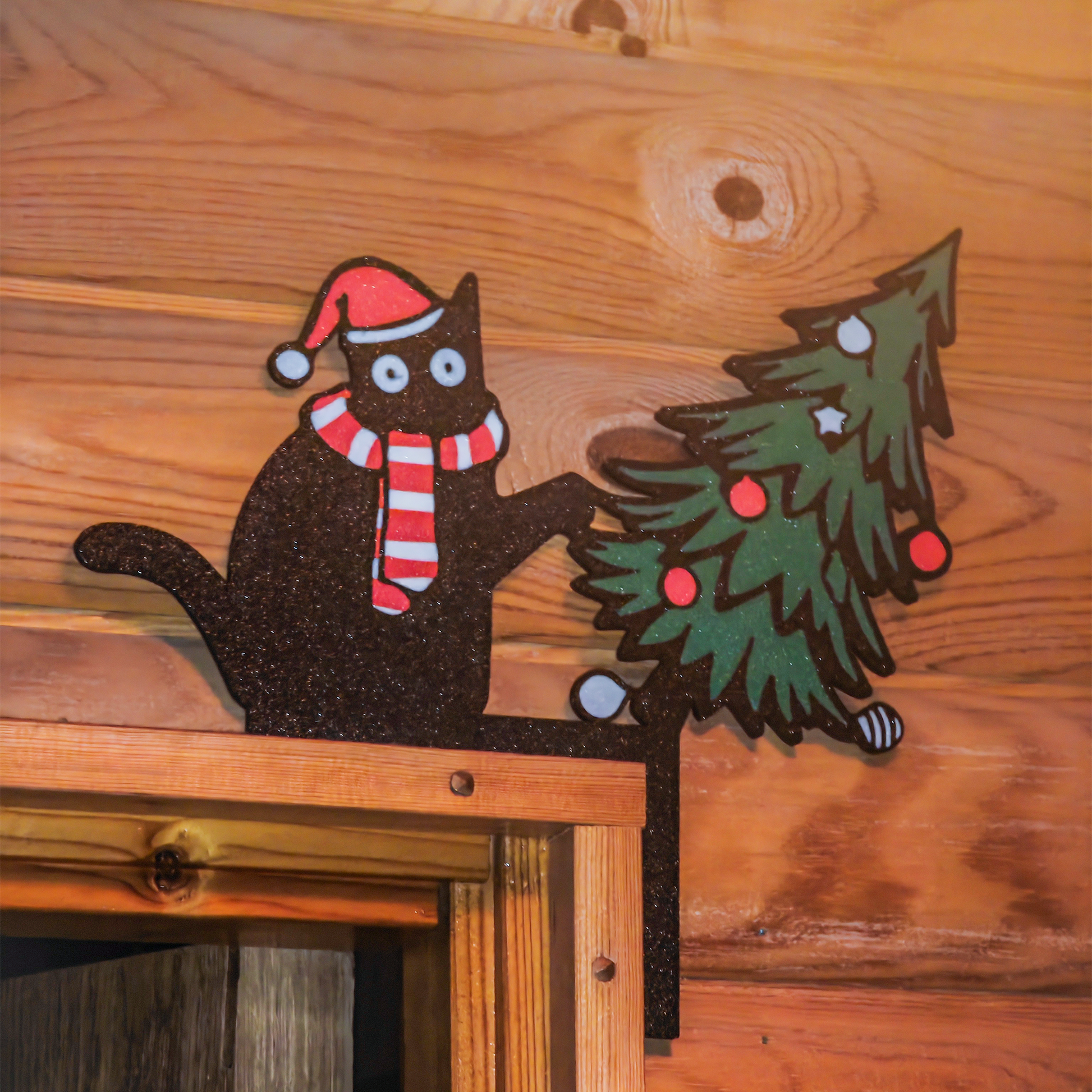 Jos kotonasi asuu pieni karvainen “joulunhengetön” tuholainen, tämä koriste on kuin tehty sinulle. Tämä ovenkarmin päälle asetettava kissa & joulukuusi -kulmakoriste kuvaa täydellisesti sitä hetkeä, jonka jokainen kissanomistaja tuntee: kun kuusi ei ole koriste – vaan lelu.